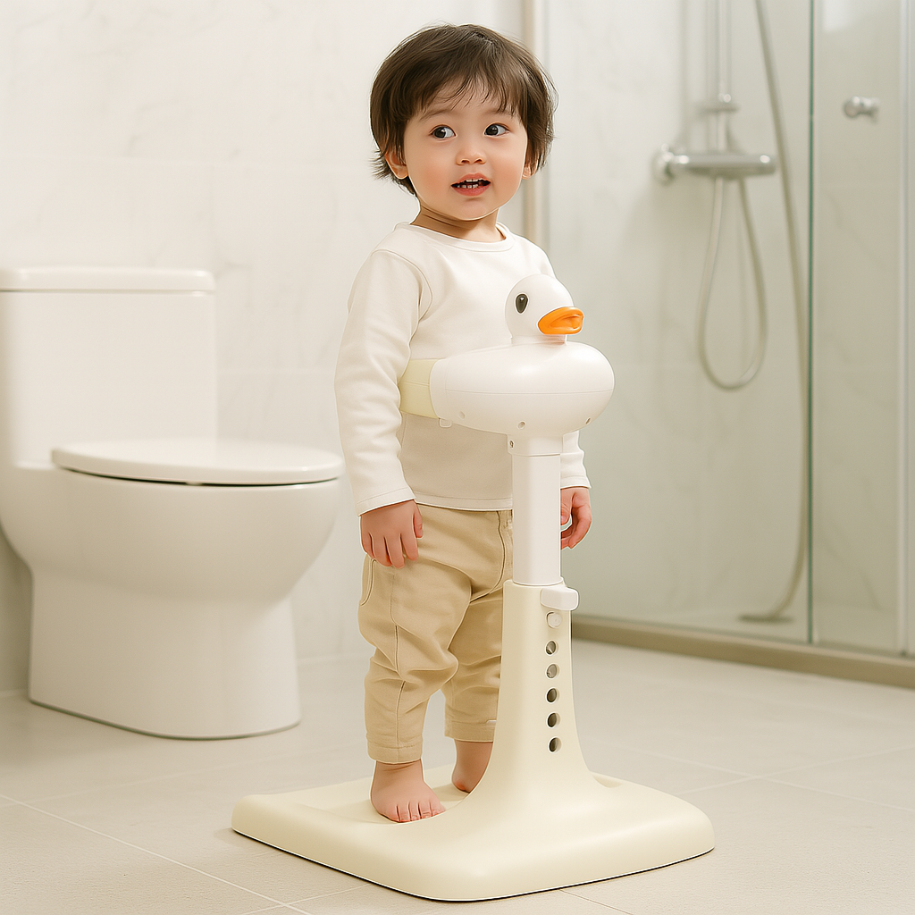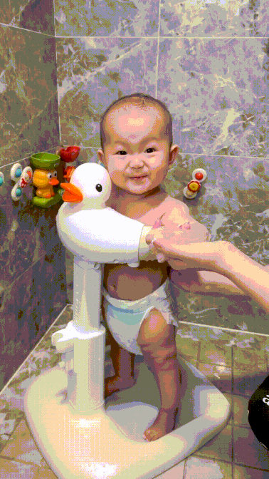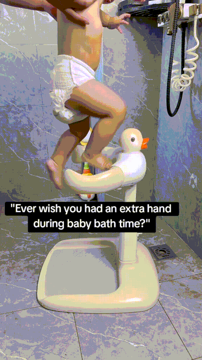 Bathing time just got easier and safer! This thoughtful mom uses an ergonomic baby shower support seat that keeps her little one standing, secure, and happy during showers. No more slipping, no more struggles – just smiles, giggles, and a stress-free routine. A perfect tool for modern moms who care about comfort and safety!